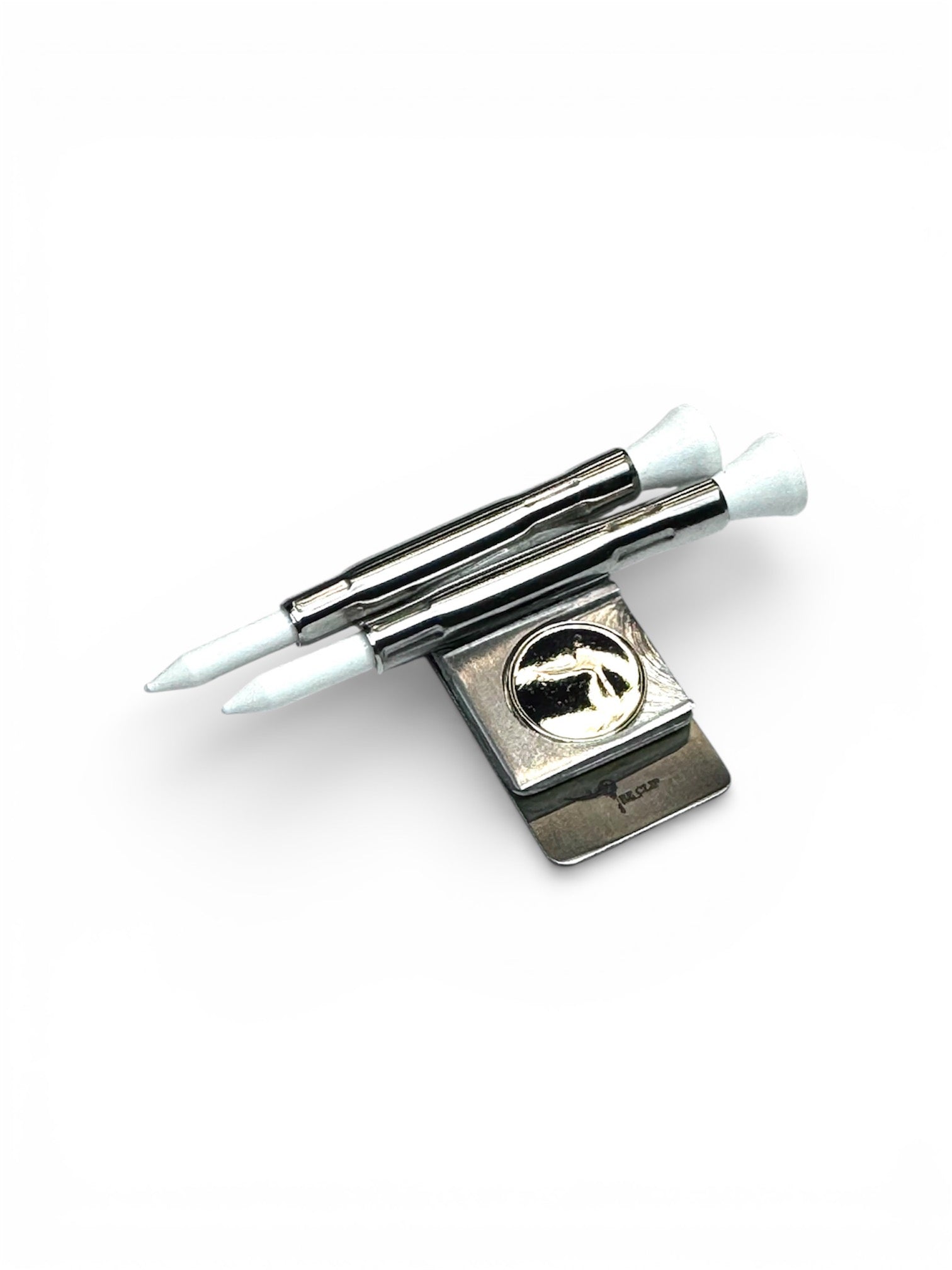 ティークリップ®テザー™: 米国製 | ベルトまたはウエスト用ゴルフティーホルダー | ティー2本と18mmボールマーカー用ダブルバレル